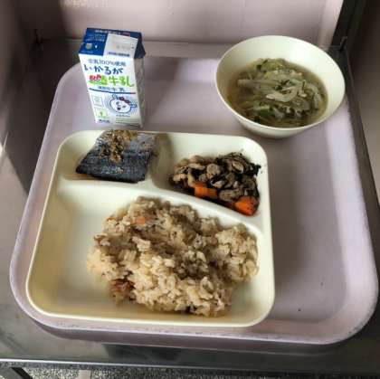 こんぶとかつおぶしなど、異なる材料でとっただしを合わせると、一種類だけの時よりもうま味が強くなります。今日の給食のすまし汁と大豆の煮ものには、さばぶしとにぼしの混合けずりぶしと、こんぶでとっただしを使用しています。