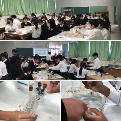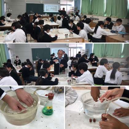 本日の2限目に1年5組で理科の研究授業をおこないました。