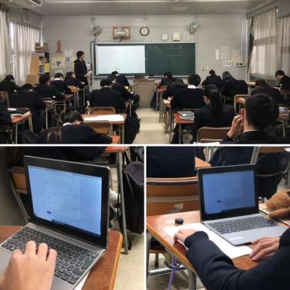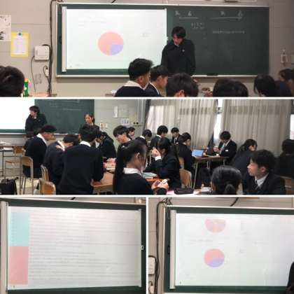 3限目に3年5組で理科の研究授業を、3年6組で社会科の研究授業をおこないました。