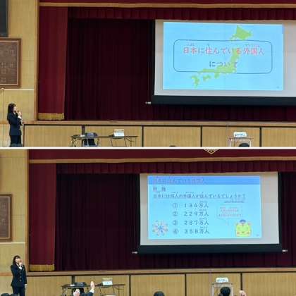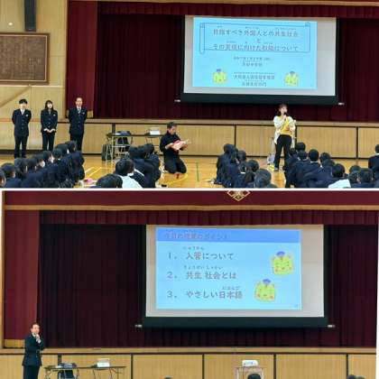 大阪出入国在留管理局より3名の講師を招いて、「1.入管について」、「2.共生社会とは」、「3.やさしい日本語」について、講話をしていただきました。
