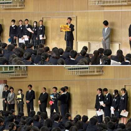 対面式では生徒会が司会を担当し、1年生代表のあいさつ、在校生代表のあいさつをおこないました。