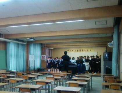 ↓(合唱の練習、音楽室にて) かなりできあがっているクラスもあります。