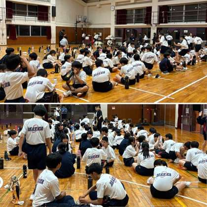 大いに盛り上がった室内オリンピック終了後に、補食のおにぎりを食べました。