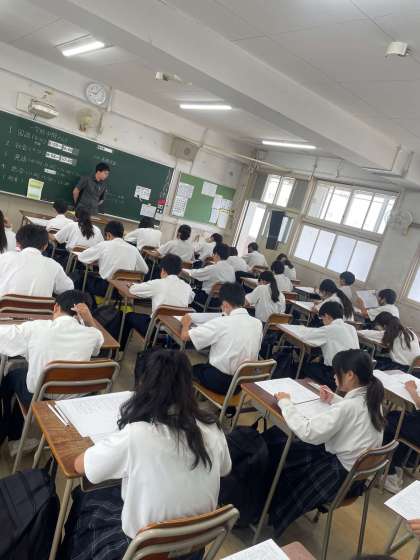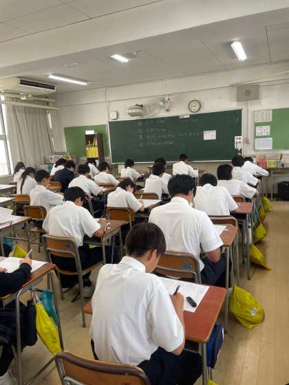1学期中間テストの初日です。1年生の時間割は、1時間目国語、2時間目社会、3時間目英語です。1年生にとって、初めての定期テストになります。教室は、適度な緊張感に包まれていました。