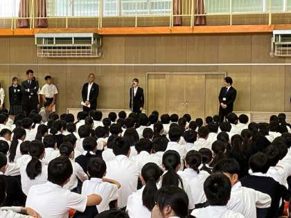 最後になりますが、今日から3週間、2人の教育実習生が来られます。皆さんにお願いしたいのは、普段、先生方と接しているような気持ちや態度で、実習生にも接してほしいということです。そうすることで、実習もしやすくなりますし、教育実習から学ぶことも多くなると思います。教育実習が終わったときに、「今回の教育実習で、教師になりたい気持ちが強くなった」、「茨田中学校で実習ができて、学ぶことも多くあり、本当によかった」と思ってもらえる教育実習になればと先生は思っています。今日から3週間、教育実習が充実したものになるように、協力してあげてください。
