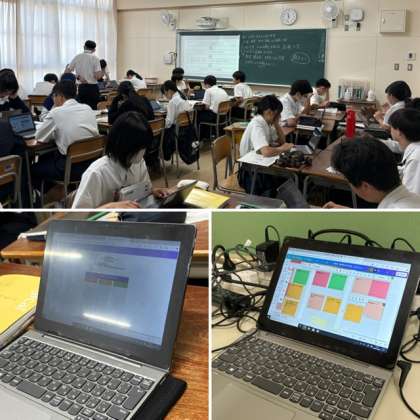 授業の内容は、災害への備えてとして、どのようなことが必要かを自助・共助・公助の観点から自分の考えを入力し、班で共有をしていきました。