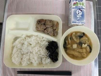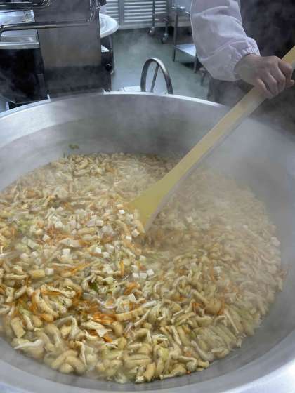 今日のみそ汁には、とうふ、うすあげ、キャベツ、こまつな、にんじんが使われています。