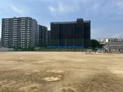 中館とプールの間は、まだ工事中ですが、部活動での使用はかなり広くなります。