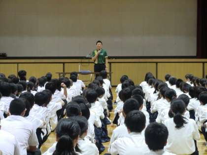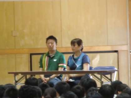 アテネオリンピックに出場された(卓球シングルス・ダブルス日本代表)新井周さんに講演と実技指導をしていただきました。アシスタントとして、奥様にもご協力をいただきました。