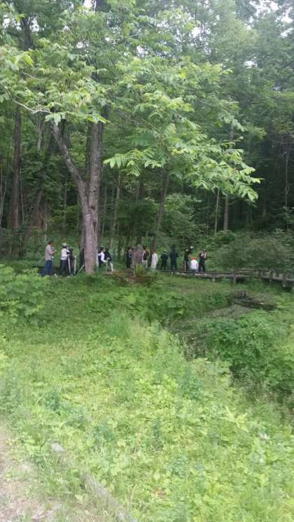 農家体験中の移動です。姫川の源流に到着しました。クレソンがあったり、水が飲めたりするそうです。