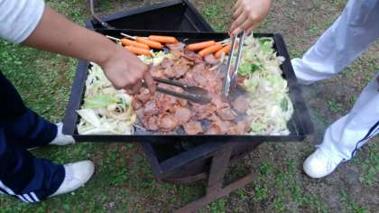 バーベキューを楽しみ、山菜の天ぷらを美味しくいただきました。