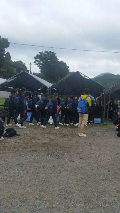 ラフティング場所ですが、まず、昼食(カレー)です!!