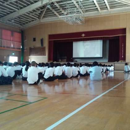 6時間目に体育館で、職場体験に向けてDVDをみんなで見ました。他の地域が職場体験に取りくんでいるようすを見ながら、2年生のみんなも少しずつ体験のイメージがわいてきているようでした。