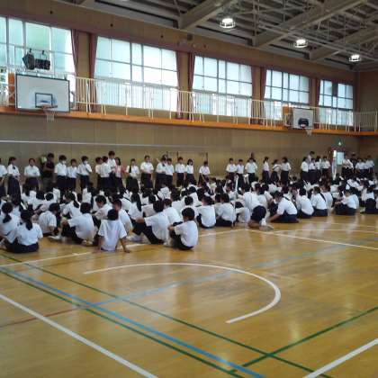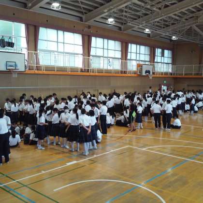 5・6時間目、1年生は体育館で一泊移住に向けて班や係別の整列確認や打ち合わせを行いました。すばやく整列し、先生の指示を聞くという課題を一つずつクリアしながら、まとまりある行動をとることができていたように思います。この一泊移住では、集団行動を身につけるということが大きな目標でもあります。また、そのことを通じて気持ちを一つにすることの大切さも学んでほしいものです。