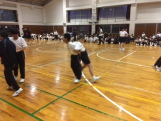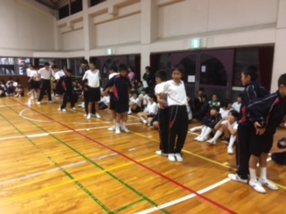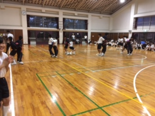 体育館でのレクの一コマです。