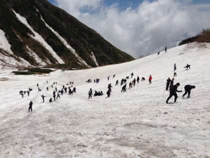 千畳敷での雪遊びの様子です。