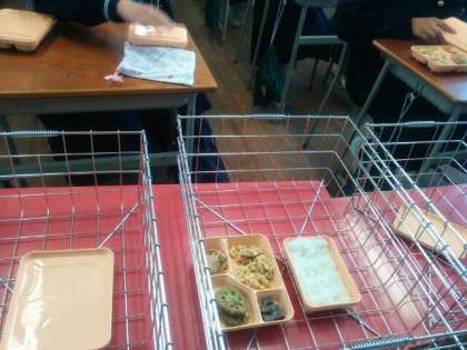 受け取りについては一定の速さでできるようになりました。(これ以上の短縮は厳しいです)時間的には、2・3年の昼食終了の合図で1年生が食べ始めている状況です。味の感想は生徒それぞれです……
