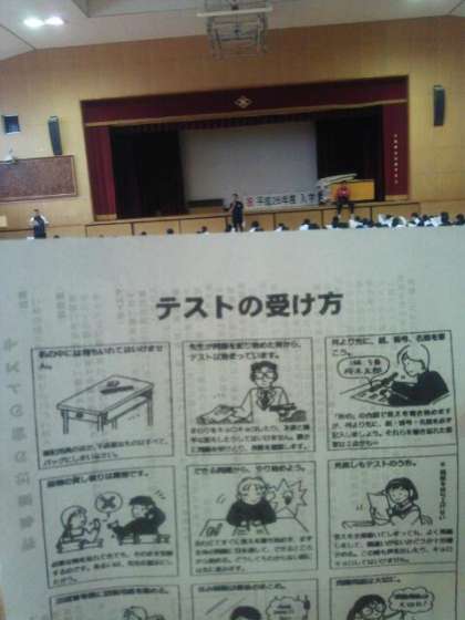 テストにおける「きまりごと」などを集会で話をしています。