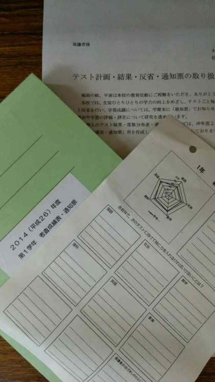 1年生 成績関連のプリントについて  6/11