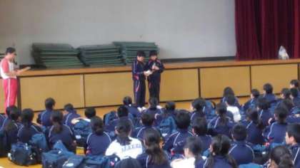 学校に着きました。解散式の様子です。
