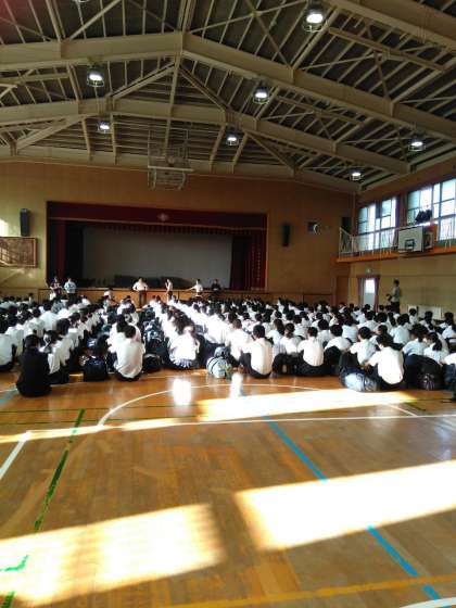 出発式が終わりました。 バス乗り場に向けて移動しています。