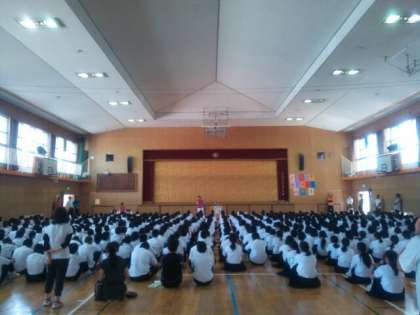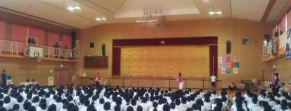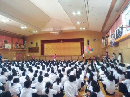 トップアスリートによる「夢・授業」〜バドミントン編 を5,6時間目に1、2年生でおこなっています。バルセロナオリンピックで活躍された、岩城ハルミさん、成平薫さんが来校されて、講演ののち実際にバドミントンの実技を指導していただきました。