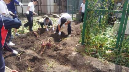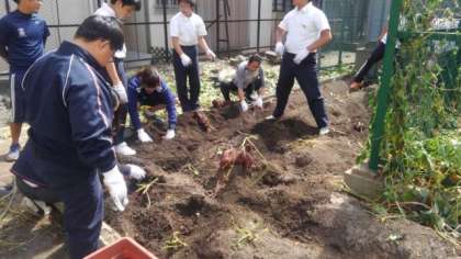 今日は、特別支援学級在籍生徒がサツマイモ堀りを体験しています。予想していたサツマイモの大きさよりもはるかに大きなサツマイモが出てきています。サツマイモだけでなくいろいろな、虫も出てきて良い体験を積んでいます。