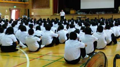 今日から、各学年で防犯教室がひらかれます。鶴見警察署の少年課・交通課等から警察官の方にお越しいただきます。これからの夏に事件・事故に巻き込まれない、起こさないようにするにはどうすればよいのか、というお話をしていただきます。(新型扇風機を投入していますが暑いです… その中でも、しっかり聞いてくれてます)