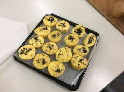 先日、学校で収穫したサツマイモの調理を今日もしました。本日のメニューは、サツマイモの蒸しパン、サツマイモのポタージュスープでした。美味しそうに仕上がりました。