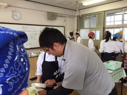 担任の先生も人数の少ない班のお手伝いをして実習メニューの肉じゃがを作っています。出来上がりはどうだったのでしょうか。