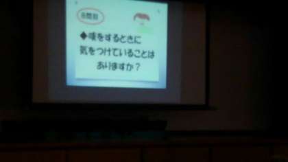 1年生は6時間目に体育館で「かぜ・インフルエンザ予防」指導を行いました。1年生後期保健委員会が中心に話や映像など工夫して、わかりやすく説明をしてくれました。聞いたことを知識としてこの冬に向けて実践できるようにがんばりましょう。