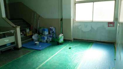 管理作業員さんたちが、順番に塗装等の塗り直しをおこなっています。きれいに養生(マスキングテープ等で塗らないところをカバーしている)して、さらに丁寧に塗装をおこないます。(ただ、サウナ状態です!写真とる一瞬でもクラクラします!)