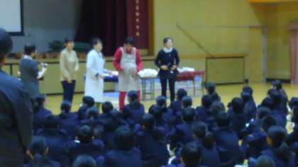 本日の5、6時間目の総合の時間は、性教育の時間でした。済生会野江病院より倉友さん、岩崎さんに来てもらい命のお話や生命の誕生についての講話、そしてシュミレーターを使った妊婦体験と赤ちゃんだっこ体験を実施しました。