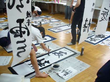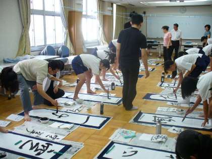 先日の、生徒のための「書道実技講習会」(中文連)での様子です。