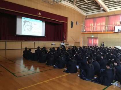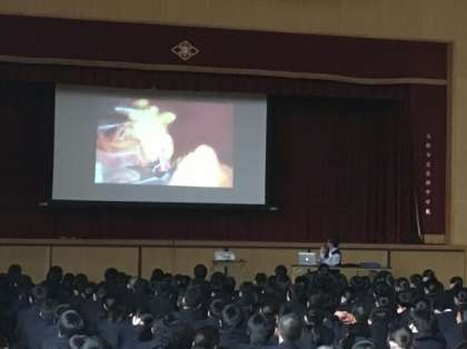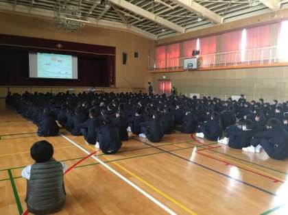 2月4日6限に2年生全員を対象に「がん教育」を実施しました。学校でのがん教育の重要性が言われ、がんについて「正しく理解すること」「健康と命の大切についてしっかり考えること」が目標です。講師に、済生会野江病院消化器外科部長の太田秀一医師を招き、「がんとは?・がんの予防・がん検診」等について学びました。スライドや映像もあり、生徒たちは関心を持ちながら話を聞く姿勢がみられ有意義なものになりました。
