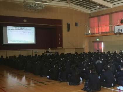 2月6日の5限は2年生は、体育館で済生会野江病院から講師をお招きして性教育の授業をしていただきました。6限は1、2年生合同で耐寒マラソン大会の説明会が開かれ、コース説明や諸注意がありました。また、陸上部顧問の先生からマラソンについての熱いお話もありました。