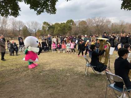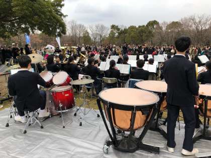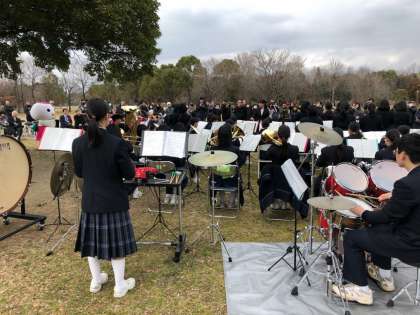 2月17日(日9鶴見緑地 緑のせせらぎ(アーモンドの森)にて、植樹式があり、本校吹奏楽部が式典に参加し、演奏などを手伝わさせていただきました。