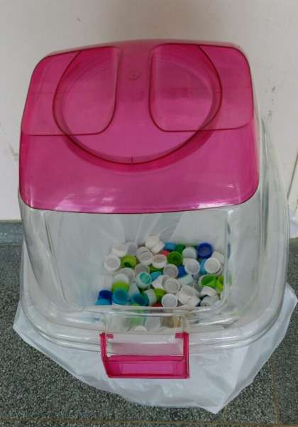 生徒会では、毎朝登校時、正門で、「ベルマークとペットボトルキャップ」の回収をしています。 なかには、学級に「専用の回収箱」を作っているクラスもあります。(ちなみに、名前があります。 ダンボー君?だそうです!)