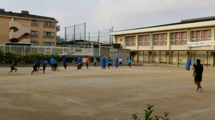 ラグビー部の朝練です! (普段はグラウンドで練習をしています)