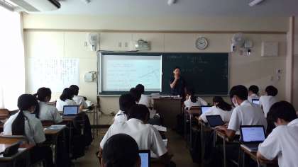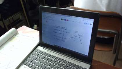 2年生の数学では、学習者用端末を活用し、一次関数の授業を行っていました。