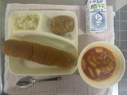 レバーが入っていますが、カレー味がついていて食べやすく、生徒たちにも人気のメニューです。