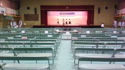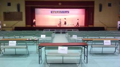 放課後に3年生が合唱コンクールの会場設営を行いました。