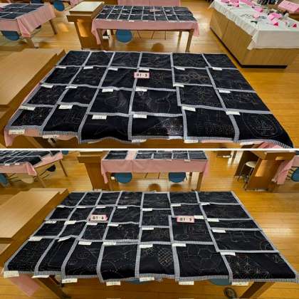 被服室では、家庭科部の作品と1年時に作成した刺し子リバーシブルランチマットなどを展示しました。