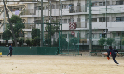 運動場では、陸上部、ラグビー部、ソフトボール部、テニス部が練習をしています。
