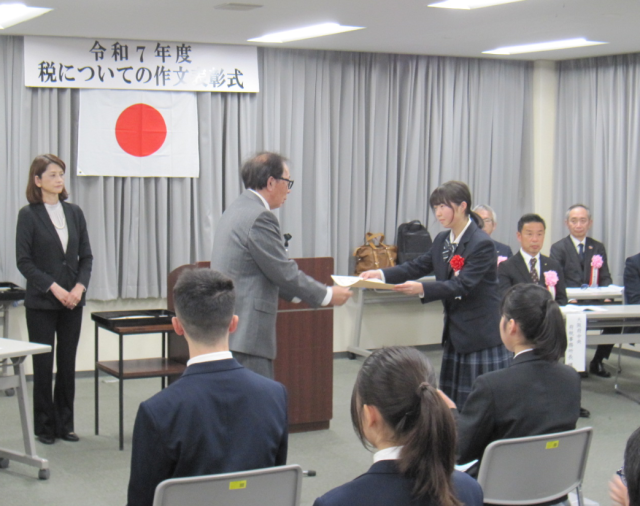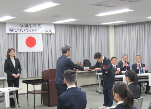 茨田中学校からは、3年生5名の生徒が受賞し、そのうち3名の生徒が表彰式に参列しました。