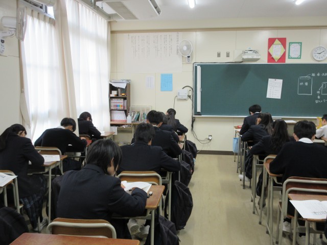 生徒たちは、これまでの学習の成果を発揮しようと、時間いっぱい集中して問題に向き合っていました。今回のテストを通じて、学習の成果と課題を把握し、今後の学力向上に生かしていきます。