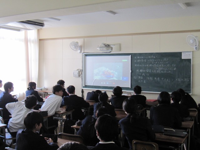 2年生は、5限目に修学旅行の行程に含まれている「選択別体験活動」について、紹介ビデオの視聴を行いました。