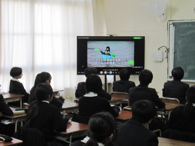ビデオでは、各体験活動の内容や見どころ、現地での様子などが紹介され、生徒たちは実際の体験をイメージしながら熱心に視聴していました。