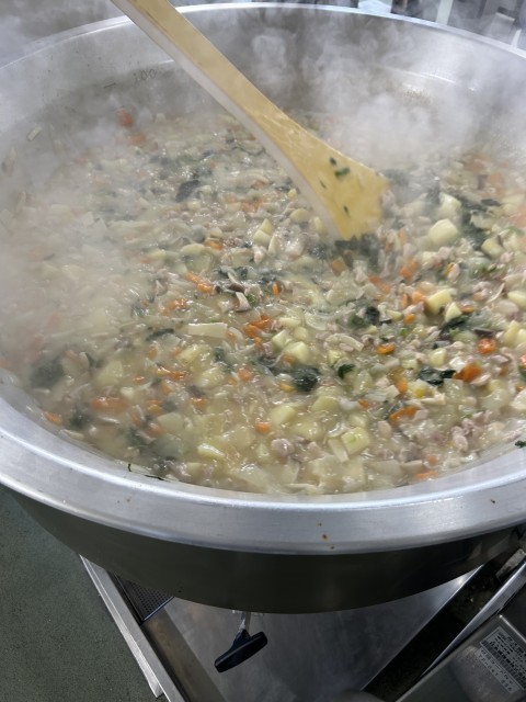 今日の鶏肉とほうれん草のシチューは生徒たちにも大好評のメニューです。