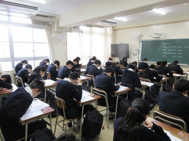本日は、1・2年生の学年末テスト2日目です。昨日に引き続き、生徒たちはそれぞれの教室で真剣な表情で試験に臨んでいました。